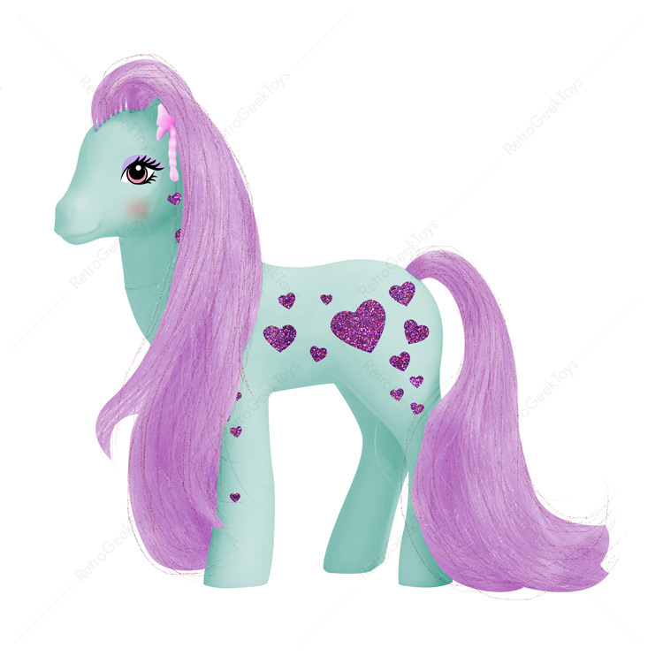 Starflash is a vibrant and confident pony who lights up every room she enters. Her brilliant blue body glows like the deep evening sky, while her rich purple mane, streaked with glistening pink tinsel, adds an extra touch of dazzle. Her symbol, a collection of glittery purple hearts, represents her deep love for friendship, beauty, and making memories. With bright pink eyes, accented by elegant purple eyeshadow, she carries an air of sophistication and joy wherever she goes.