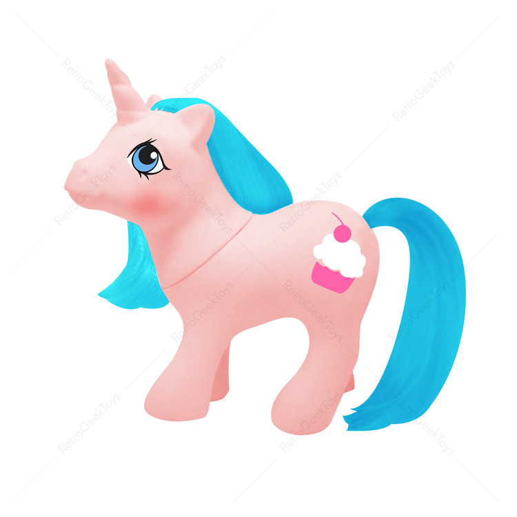 With her soft pink coat and fluffy blue mane, Li’l Cupcake is as cute as can be. Her tiny cupcake symbol, decorated in pink and white, represents her love for baking and sharing treats with friends. Her sparkling blue eyes add to her charm, making her an adorable companion.