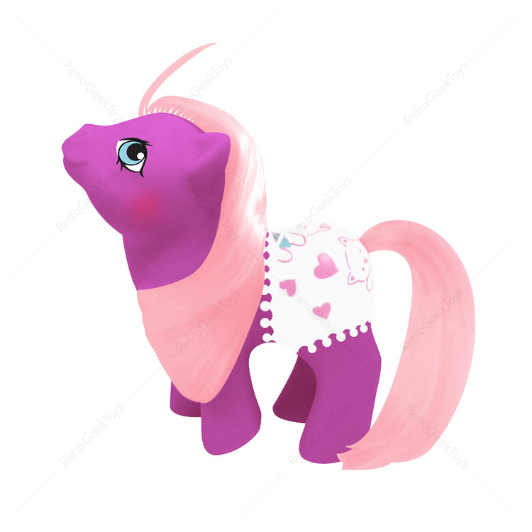 Baby Pony is a playful little bundle of joy, always eager to learn and explore with her mommy by her side. With a matching magenta coat and pink mane, she is like a tiny version of her mother, sharing the same sparkling aqua eyes full of wonder. Her symbol, a fancy pants-style baby design with a cartoon kitty and five pink hearts, represents the love and happiness she feels every day. Whether they are sharing bedtime stories, playing in the meadow, or simply enjoying a warm hug, Mommy and Baby Pony remind everyone that love is the most magical thing of all.