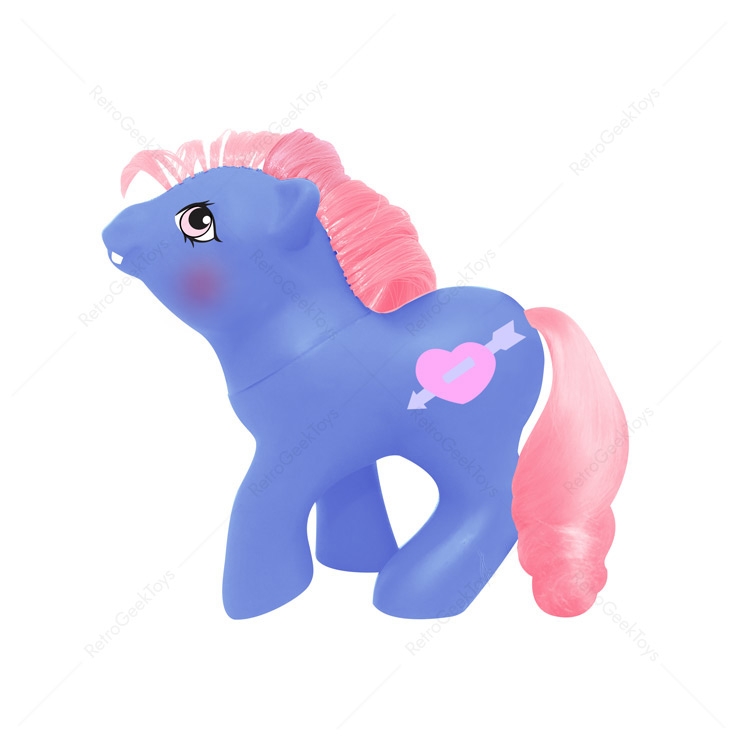 Purple Valentine Twin is a tiny bundle of love, always ready to share kindness and joy. Her soft purple body glows with warmth, while her pink mane flows like a ribbon of affection. Her symbol, a delicate pink heart pierced by a purple arrow, represents the magic of friendship and the power of love. With her bright pink eyes, she sees the world as a place filled with happiness, where every pony deserves a little love.